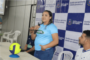 A secretária municipal de Esportes e Lazer, Carolina do Carmo, lembrou da importância do apoio e da participação dos pais. “O diálogo encorajador, uma simples presença nos jogos pode fazer grande diferença na vida da criança, do adolescente. O exemplo foi a final dos Jogos Abertos da Juventude, realizados na semana passada, aqui em Santa Maria. Nossas atletas estavam na final, mas perderam. Quando elas olharam para as arquibancadas e viram os pais, fez toda a diferença, não só para as meninas, mas para todos nós. Então pais, participem, apoiem seus filhos. Nós também estamos aqui, de portas abertas, para atender vocês”, disse.