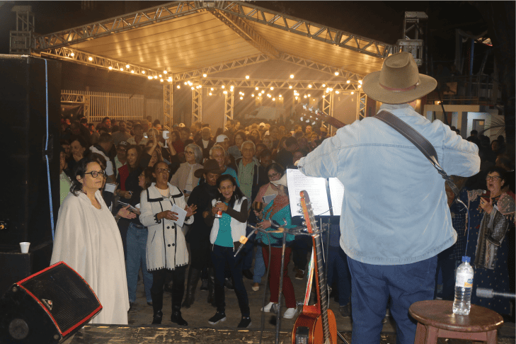 Promovido com apoio da Prefeitura, o evento, além de atrair os sebastianenses ausentes para recordações, um bom bate-papo e calorosos abraços de saudades, valoriza as canções populares convidando o público para cantar junto.