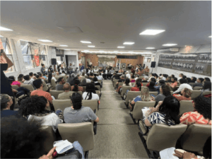 28/07/2025 – “Eu não abro mão, a greve continua se cortar nosso cartão”. Com esse grito de guerra servidores públicos municipais de Itabira, a maioria professores, reafirmaram a decisão de seguir com os protestos contra as últimas medidas adotadas pelo prefeito Marco Antônio Lage (PSB) em nome da contingência de gastos, durante a reunião de comissões da Câmara Municipal desta segunda-feira (28). Os servidores compareceram em massa à reunião para tentar convencer os vereadores a se posicionarem contra o Projeto de Lei 111 do Executivo.