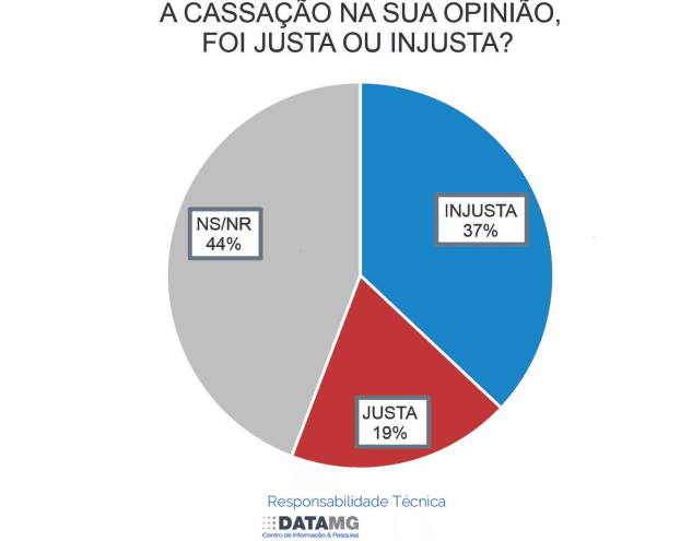 Considerando um quadro geral, 37% da população acredita que a cassação foi injusta e 19% justa. Os entrevistados que não sabem ou preferiram não responder somam 44%.
