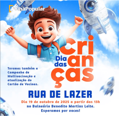 18/10/2025 – Neste domingo (19), a Prefeitura de Santo Antônio do Rio Abaixo realiza, por meio das secretarias municipais de Educação, Saúde, Cultura, Turismo e Esporte, o Dia das Crianças, com brincadeiras para deixar a semana ainda mais especial.