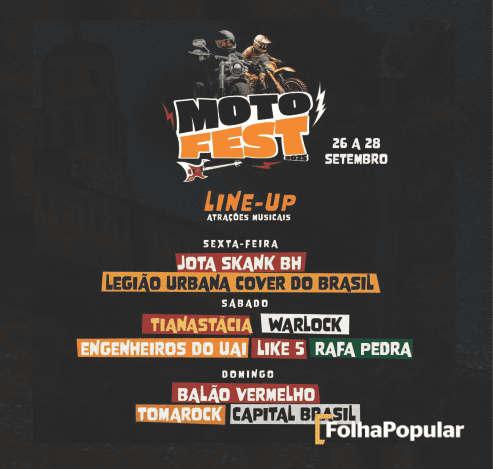 15/09/2025 – Entre os dias 26 e 28 de setembro de 2025, Morro do Pilar recebe o Moto Fest 2025, um evento que reúne muita música, esporte e integração entre motociclistas, motoclubes e visitantes. A programação inclui shows, encontro de motociclistas, o tradicional trilhão e o cross country.