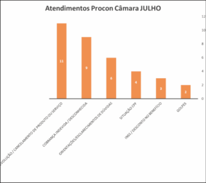 07/08/2025 – O Procon da Câmara de São Gonçalo do Rio Abaixo segue auxiliando a população do município. O órgão realizou no mês de julho, 35 atendimentos, ofertados pelos profissionais da sede do Legislativo. Dentre as demandas atendidas, houve a realização de uma audiência de conciliação, resultando em acordo entre as partes. Das 35 solicitações, 19 delas foram resolvidas mediante contato telefônico ou envio de e-mail com os consumidores recebendo orientação. Dezesseis atendimentos se encontram em situação pendente, aguardando retorno das reclamadas.