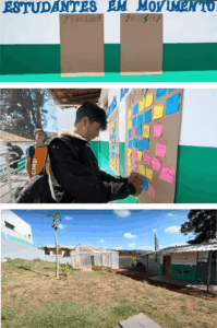 Para então definir quais seriam os problemas e soluções propostas, os docentes propuseram um quadro de “Problemas e Soluções”, a ser preenchido com post-its pelos alunos. Durante uma aula de cada período, os alunos discutiram entre eles quais problemas eles enxergavam no dia a dia da escola, e quais soluções eles encontraram viáveis de serem melhoradas através deles mesmos.